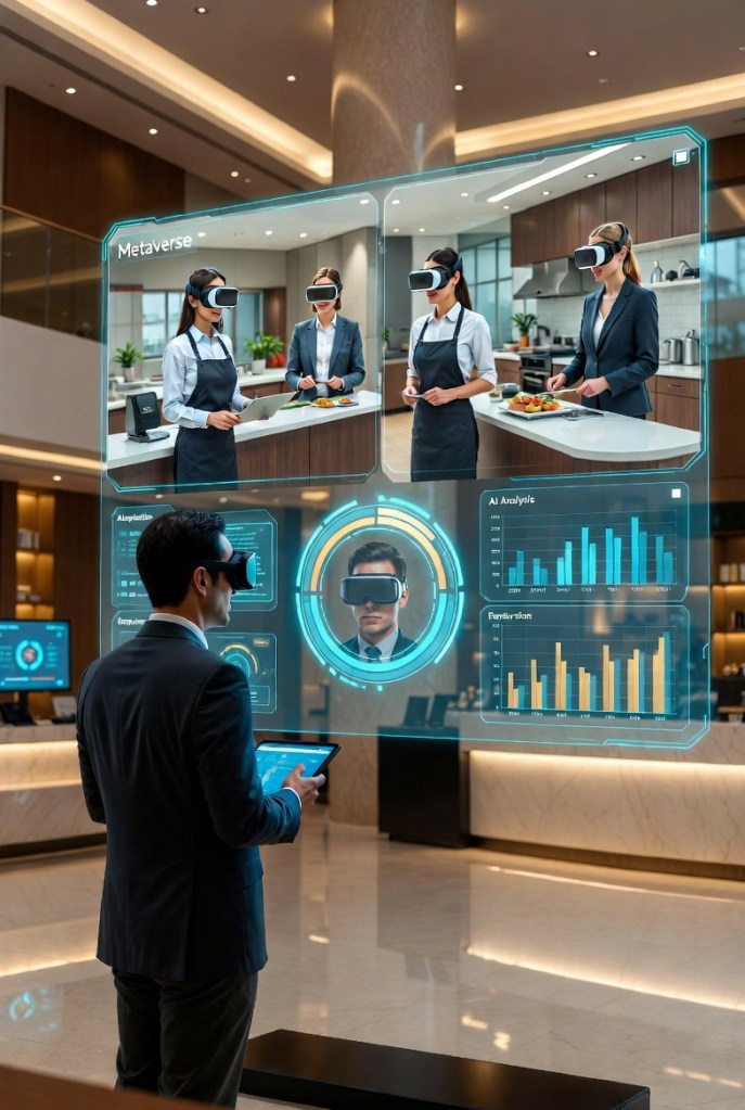 - Metaverse Ortamında Aday Çalıştırmanın Faydaları: Fiziksel sınırları ortadan kaldıran sanal çalışma alanları, adayların dünyanın her yerinden otel kültürünü keşfetmesini sağlar ve işe alımcıların adayı farklı departmanlarda (resepsiyon, mutfak vb.) sanal olarak gözlemlemesine olanak tanır (Chen, 2022).