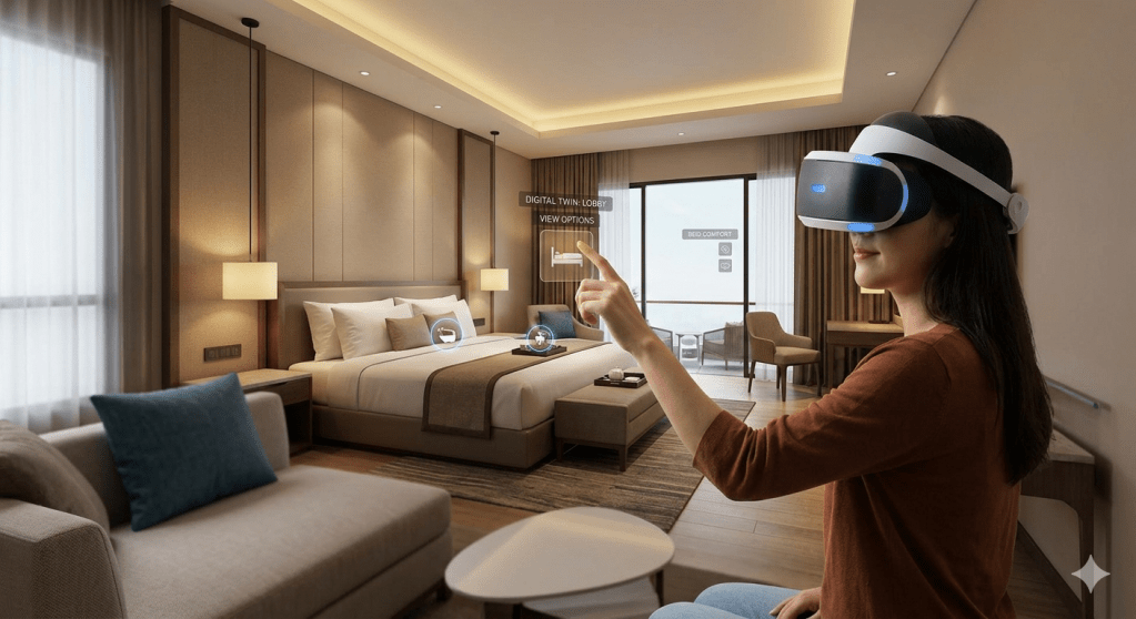 - Dijital İkiz Teknolojisi: Otellerin fiziksel mimarisinin milimetrik hassasiyetle dijital ortama aktarılması, misafirin odanın manzarasını, mobilya dokusunu ve tesisin akustiğini önceden test etmesini sağlar.
