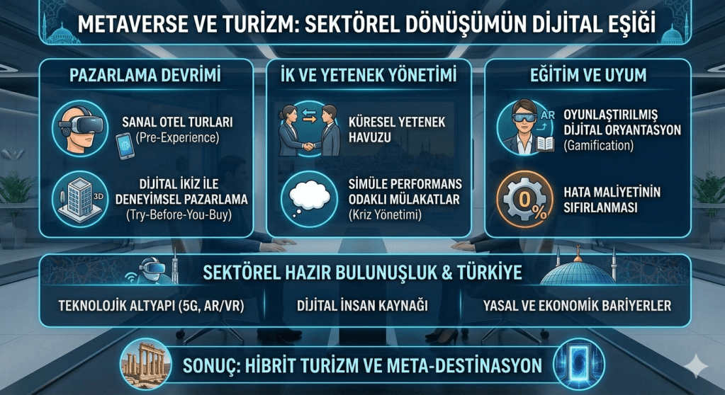 Metaverse’ün operasyonel ve eğitimsel süreçlerde sağladığı bu somut avantajlara rağmen, teknolojinin sektöre tam entegrasyonu, destinasyonların ve işletmelerin dijital hazır bulunma düzeylerine bağlıdır.