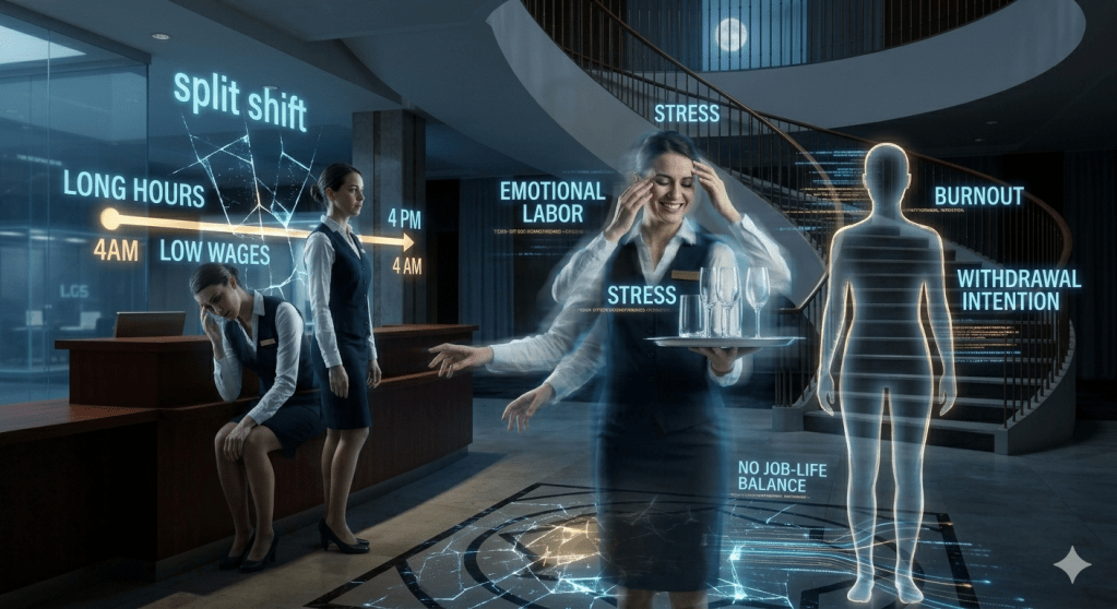 Turizmde krizin birincil kaynağı, yapısal çalışma koşullarıdır. Mooney (2016), sektördeki yüksek personel devir hızını “boşa harcanan yetenek” olarak nitelendirmekte ve bunun temelinde düşük iş-yaşam dengesi olduğunu belirtmektedir. Hizmet sunumu sırasında personelin sergilemek zorunda olduğu “duygusal emek” (emotional labor), çalışanlarda tükenmişlik sendromunu tetiklemekte ve bu durum doğrudan işten ayrılma niyetine yansımaktadır (Prentice vd., 2020). Kandampully ve Solnet (2019), hizmet yönetiminde personelin psikolojik iyi oluşunun hizmet kalitesiyle doğrudan korelasyon gösterdiğini ifade etmektedir.