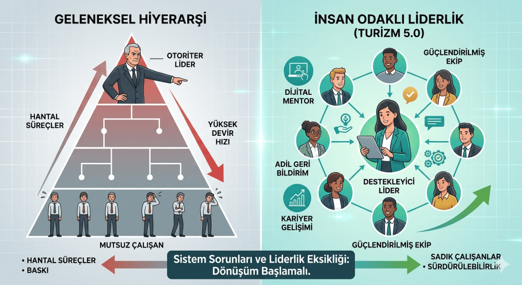 Yüksek devir hızıyla mücadelede sadece maaş iyileştirmeleri yeterli olmamaktadır. Çözüm; dijital mentorluk sistemleri, AI destekli İK süreçleri ve Hotel Meta HR gibi hibrit modellerle çalışan deneyimini kişiselleştirmekten geçmektedir. Çalışanın kendini değerli hissettiği, adil bir geri bildirim mekanizmasının işletildiği ve teknolojik araçlarla operasyonel yükün hafifletildiği bir ekosistem, turizmdeki “insan kaynağı sızıntısını” durdurmanın tek yoludur.